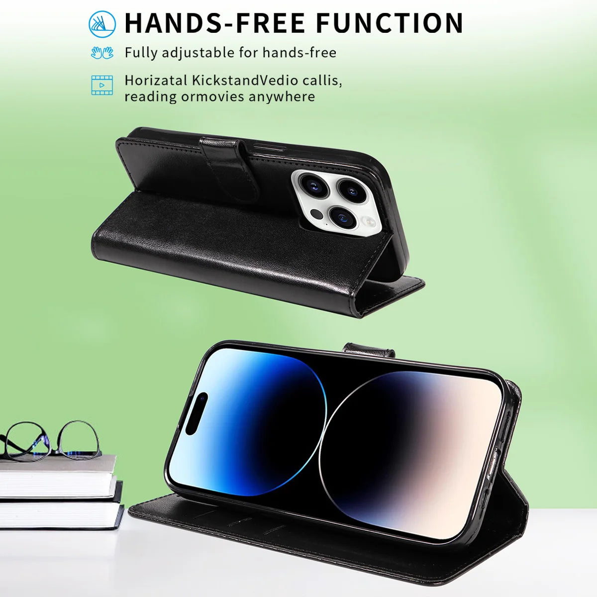 Faux Leather iPhone Wallet Case – Flip Cover with Card Slots for iPhone 11–14 Series, Pro Max, Plus, and Mini